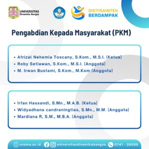 1. Afrizal Nehemia Toscany, S.Kom., M.S.I. (Ketua), Roby Setiawan, S.Kom., M.S.I. (Anggota), M. Irwan Bustami, S.Kom., M.Kom (Anggota)